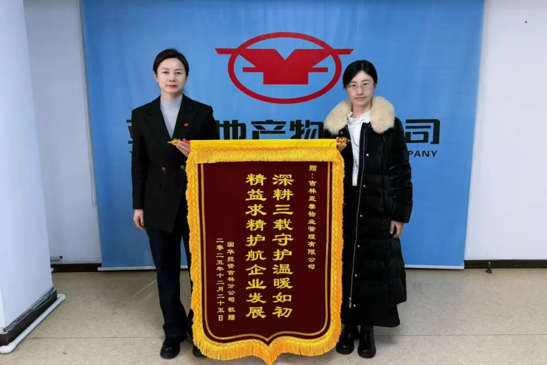 岁暮天寒,心意愈暖。2025年12月25日,亚泰物业总公司迎来温馨一幕——甲方国华投资吉林分公司专程送来一面饱含认可与谢意的锦旗,锦旗上“深耕三载守护温暖如初,精益求精护航企业发展”十六个大字,字字千钧,既是对双方三年携手同行的深情回望,更是对亚泰物业服务品质的高度肯定。